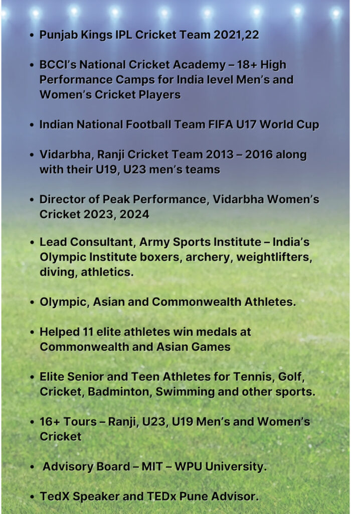 "I have trained the topmost elite athletes - IPL, NCA, Olympians, Indian Teams and Senior Athletes to succeed at the highest level.